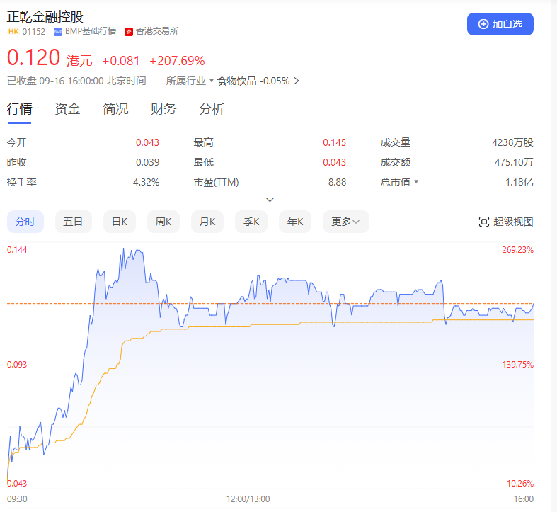 个股方面,快手涨超4%,蔚来涨近4%,美团、小鹏汽车涨近3%,腾讯控股涨近1%。此外,港股市场涨幅最大的正乾金融控股涨超200%。